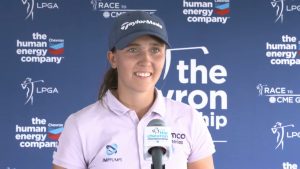 In the video, you can see her approach shot on the 18th hole and her interview.