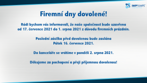 od 17. července 2021 do 1. srpna 2021 z důvodu firemních prázdnin.