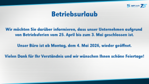 Unser Büro ist ab Montag, dem 4. Mai 2026, wieder geöffnet.