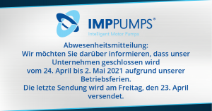 Alle Neuigkeiten, All News Ferien 21. 04. 2021 Abwesenheitsmitteilung: Wir möchten Sie darüber informieren, dass unser Unternehmen geschlossen wird vom 24. April bis 2. Mai 2021 aufgrund unserer Betriebsferien. Die letzte Sendung wird am Freitag, den 23. April versendet.