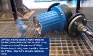 Wir haben unser GHNbasic II bis zu seinem absoluten Maximum getestet – schließlich explodierte die Pumpe bei 35 bar. Bitte verwenden Sie die Pumpe bis zu einem maximalen Druck von 10 bar, der im Handbuch vorgeschrieben ist. VERSUCHE DAS NICHT ZUHAUSE.