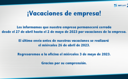 Les informamos que nuestra empresa permanecerá cerrada desde el 27 de abril hasta…