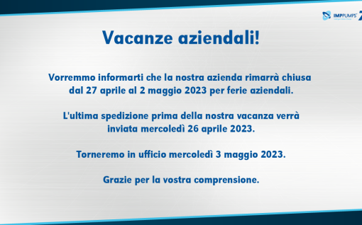 Vorremmo informarti che la nostra azienda rimarrà chiusa dal 27 aprile al 2…