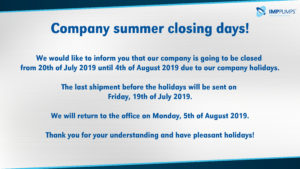 All News Company summer closing days 15. 07. 2019 We are getting ready for the summer vacations so hurry up with your orders – last shipment will be send this friday! Enjoy your vacations and we will be back soon ☀️✈️