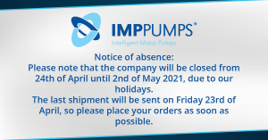 All News Holidays 21. 04. 2021 Please note that the company will be closed from 24th of April until 2nd of May 2021, due to our holidays. The last shipment will be sent on Friday 23rd of April, so please place your orders as soon as possible.