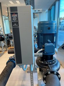 We equipped our testing rig with a prototype of a CL 150-250 in-line pump, driven with a Danfoss frequency converter.