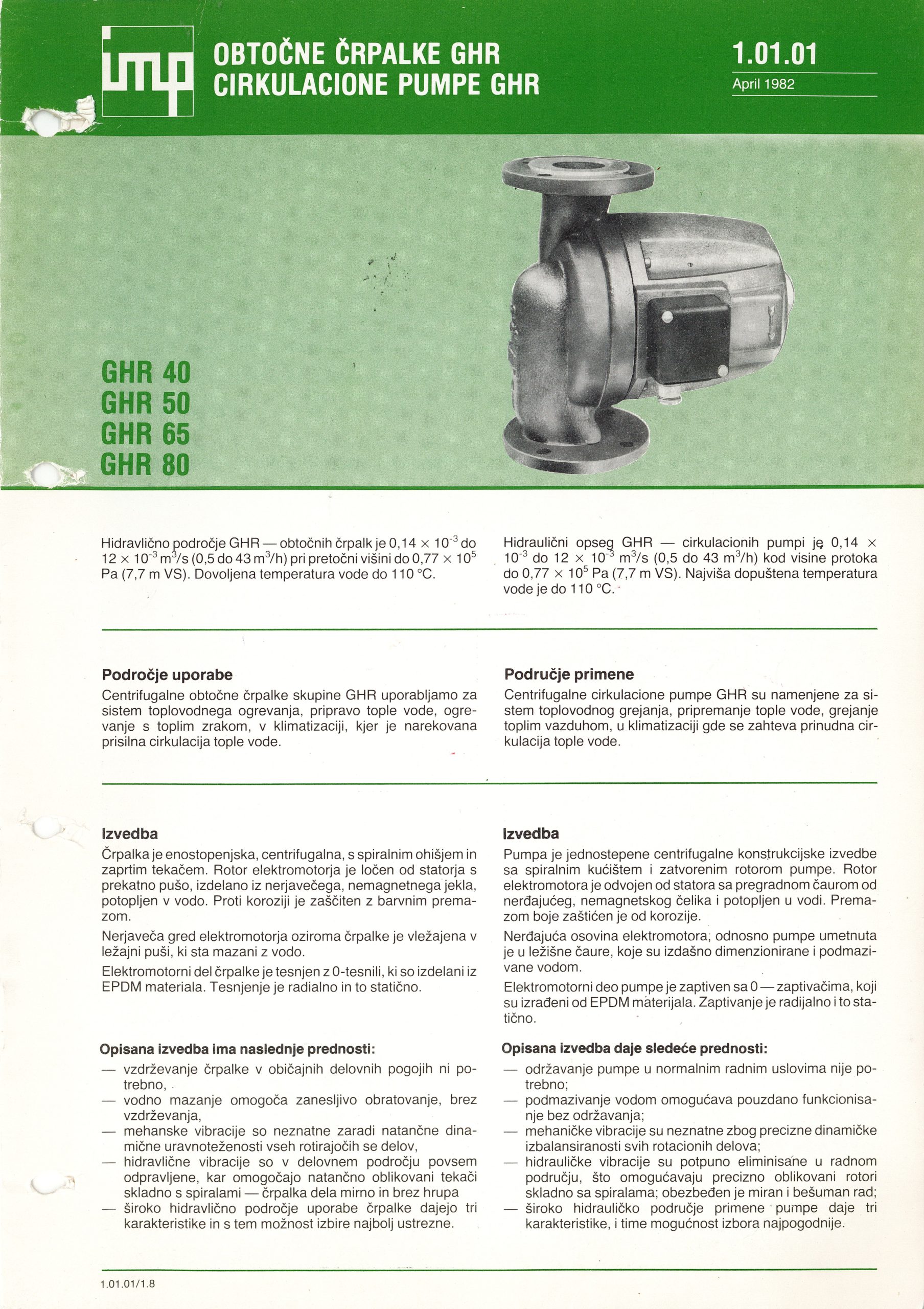Our pumps installed in 1979 are still running without problems in a production plant in Slovenia. In the pictures you can find our old models GHR and CT. These pumps are so old that we do not know the date of zero-series production for these pump models. Our guess based on our knowledge and old catalogues is that zero-series production for GHR pumps was in year 1978, CT pumps are even older and we estimate that zero-series production started between years 1960 and 1965. You can also see the first page of GHR catalogue from year 1982. Even though that pumps are still running without problems, we think it is time for extreme makeover to achieve higher efficiency resulting in lower costs!