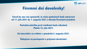 od 17. júla 2021 do 1. augusta 2021 z dôvodu firemných prázdnin.