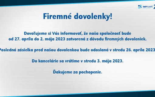 Dovoľujeme si Vás informovať, že naša spoločnosť bude od 27. apríla do 2….