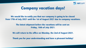 from 17th of July 2021 until the 1st of August 2021 due to company vacations.