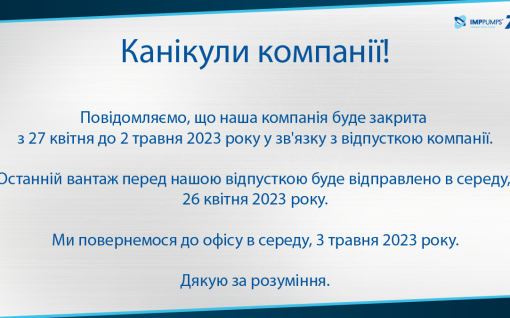 Повідомляємо, що наша компанія буде закрита з 27 квітня до 2 травня 2023…